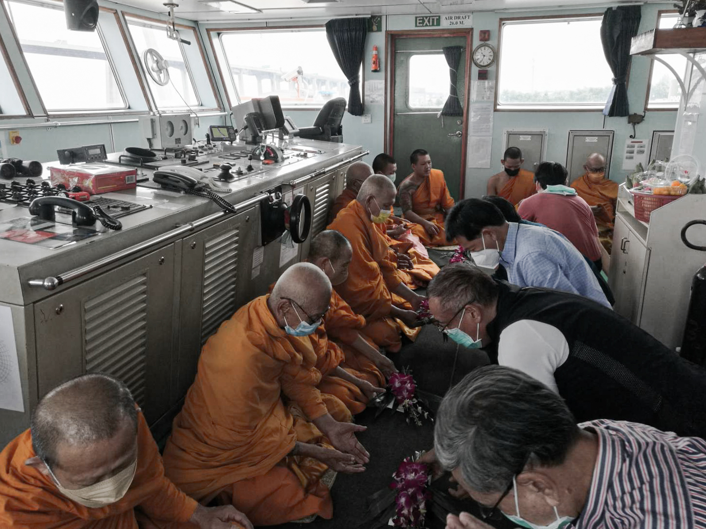 Mr. Mathiwut Mungthin, CEO of Triconeer Acme Co., Ltd and management team including employees jointly organized a merit-making event for M.V. SAMPOW PALM. To enhance the auspiciousness because “SAMPOW PALM” has been given the opportunity to provide product delivery services to customers abroad.